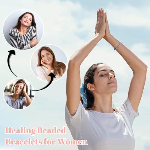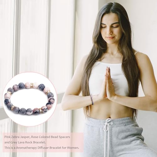 Long tiantian - Lava Rock Bracelet for Women Cute Stuff Girls Gifts 8-12 Years Old Charm Bracelet Teenage Girl Gifts Natural Stone Healing Relaxation Bracelets Pink Bracelet Valentine's Day Gifts for Women