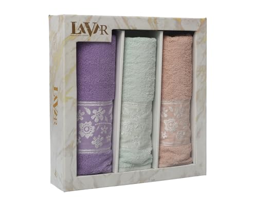- طقم لافار، 3 فوط مقاس 60*120 قطن 100%، معالج ضد الوبرة والانكماش ، Multicolor - 17594 - 312