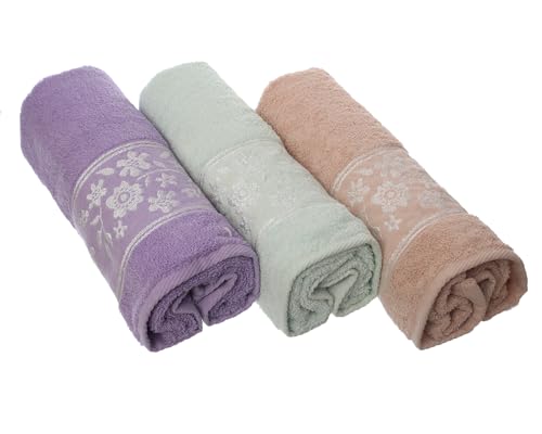 Egyptian Textile - طقم فوط من القطن مضاد للوبر من لافار، متعدد الألوان، 3 قطع، 60 سم×1.2 متر، 17594-312