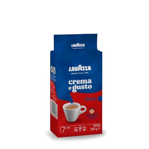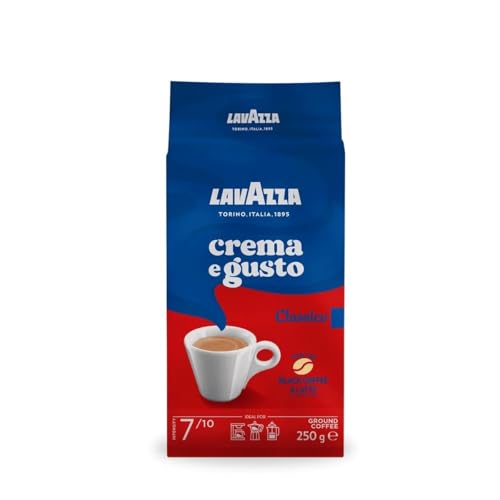 Lavazza - مزيج بن مطحون من لافازا، كريما اي جوستو كلاسيكو، ارابيكا وروبوستا - تحميص داكن، 250 جرام، أرض، علبة