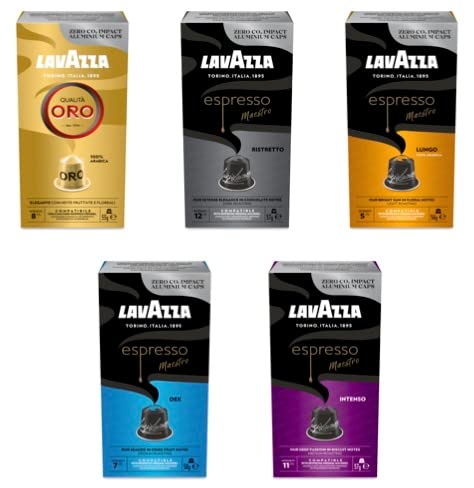 Lavazza - لافازا عبوة متنوعة محايدة من الالومنيوم متوافقة مع نسبرسو. 5 عبوات 10 كبسولات اجمالي 50 كبسولة .