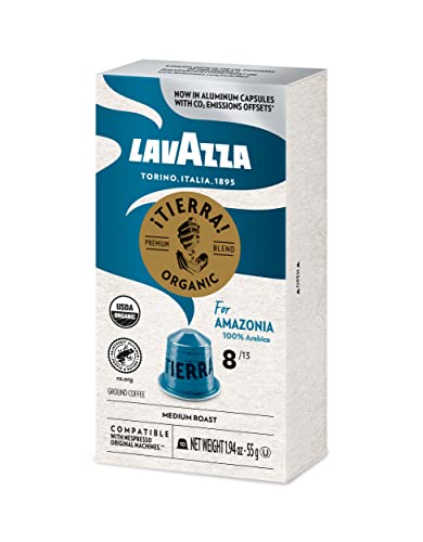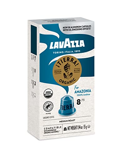 - لافازا كبسولات قهوة تييرا فور امازونيا متوسطة التحميص متوافقة مع ماكينات نسبريسو الأصلية، اسبريسو دائري ومتوازن، روائح الشوكولاتة والكراميل (10 كبسولات))