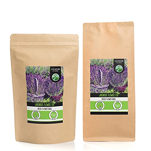Alpi Nature - زهور اللافندر، منقوع وشاي لافندر، مجففة بلطف، نقية 100% وطبيعية، عطرية للاستخدام أيضًا في أكياس العطر أو للزينة، 125 مل