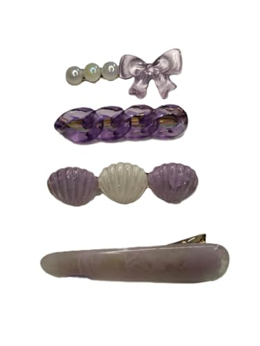 - طقم مشابك شعر ارجواني لافندر للنساء - 4 قطع