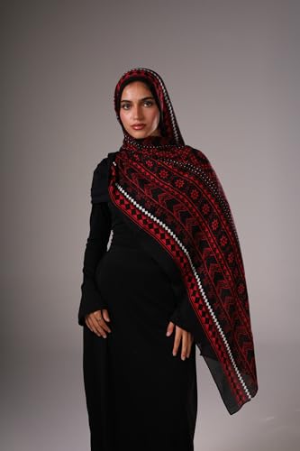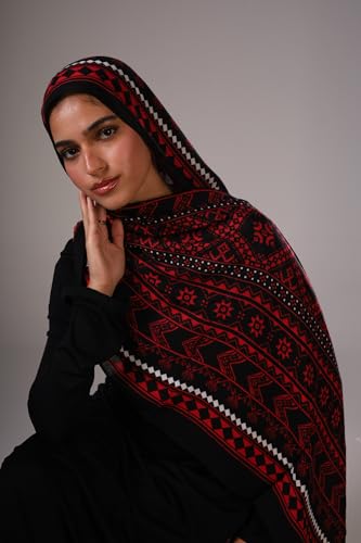 LAVEZZI - حجاب مودال بنقشة فسيفساء - سكارف طويل ناعم مزود بمسامات للتهوية للنساء - غطاء رأس خفيف الوزن للأزياء المحتشمة - شال حجاب يومي أنيق من لافيزي، أحمر (Crimson)