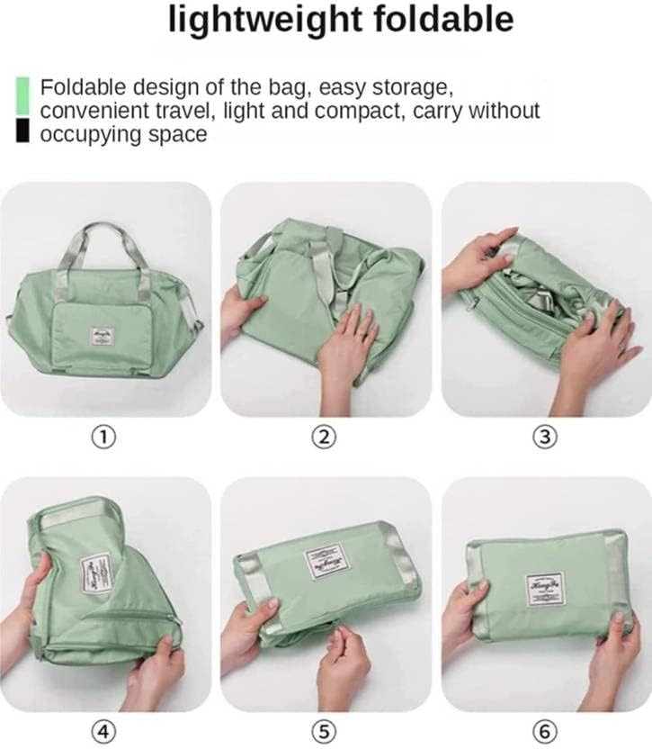 - مادة متينة - شنطة سفر قابلة للطي بسعة كبيرة مصنوعة من قماش نايلون اوكسفورد خفيف الوزن ومقاوم للماء والتمزق، صلبة ومتينة وقوية بما يكفي للحمل. تكفي للرحلات القصيرة ويمكن أن تستوعب بسهولة 3-5 أيام من ملابس السفر.