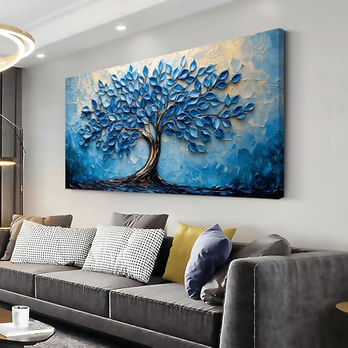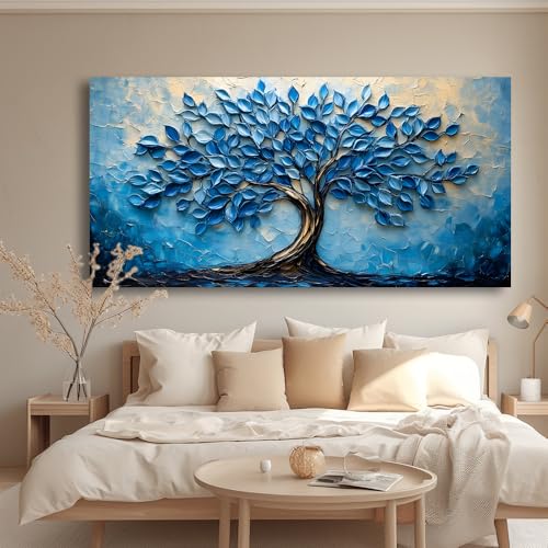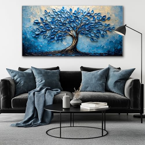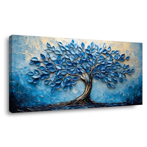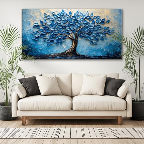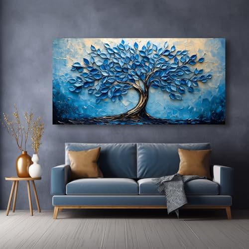 LAVIKARS - لوحة فنية جدارية عصرية بمشهد شجرة الحياة لغرفة المعيشة والمكتب، لوحة زيتية لمناظر طبيعية، مطبوعات على قماش، عمل فني طبيعي كبير، ديكور للمنزل والمطبخ وغرفة النوم من لافيكارز (51 سم × 1 م) أزرق كحلي