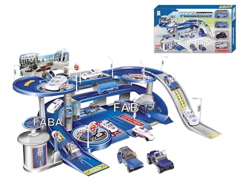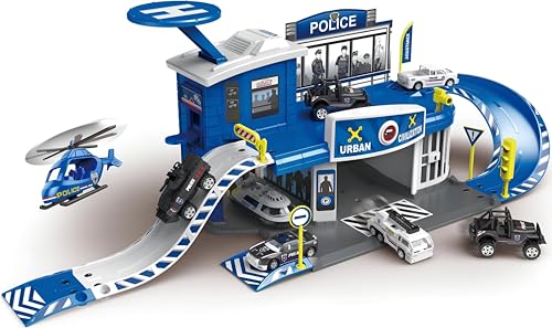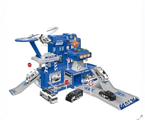 Generic - مجموعة لعب تطبيق القانون - مرآب شرطة متعدد المستويات مع طريق خارجي وعلامات مرور وفتحات وقوف السيارات لمهام الشرطة الخيالية