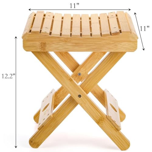 - مقعد حمام من الخيزران مجمع بالكامل، مقاس 11.4 × 11 × 12.2 انش. تصميم قابل للطي، يمكن وضع مقعد الاستحمام في زاوية صغيرة عند عدم الاستخدام