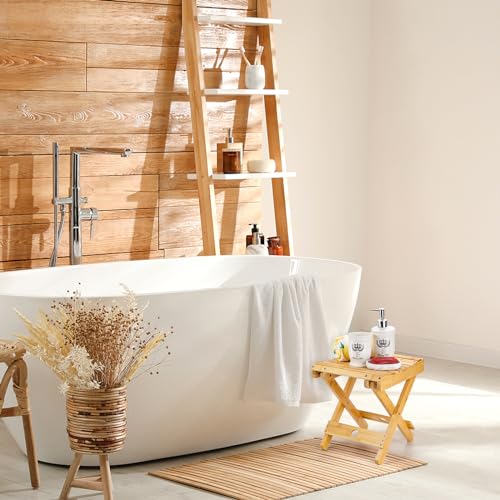 Lawei - كرسي صغير للحمام من الخيزران - 30 سم قابل للطي من لاوي، للاستخدام في الاستحمام، حلاقة الساقين، ودعامة للقدم