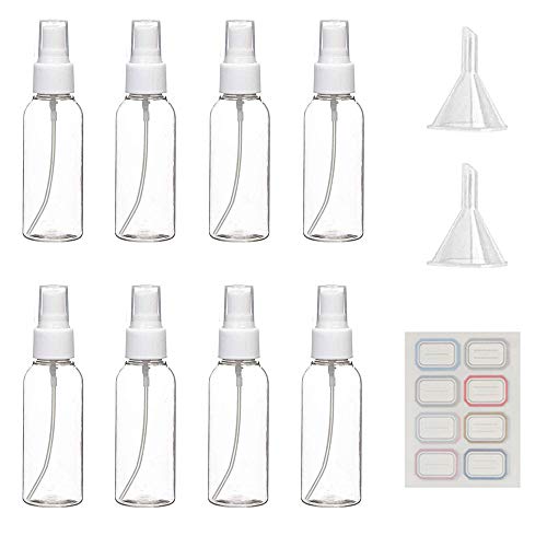 Generic - مجموعة بخاخات بلاستيك مقاومة للتسرب مع 2 قمع و8 ملصقات لتخزين مستحضرات التجميل للسفر من لويوم، 2 اونصة/60 مل (مجموعة من 8)