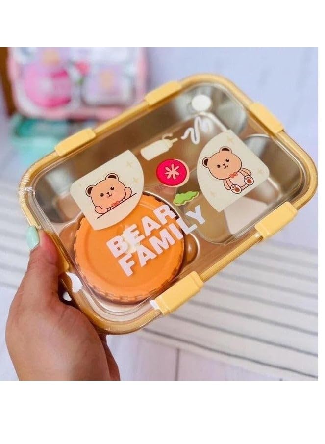 generic - لانش بوكس من الستانلس ستيل من لاكسون 7089 بتصميم دب فاميلي - اصفر