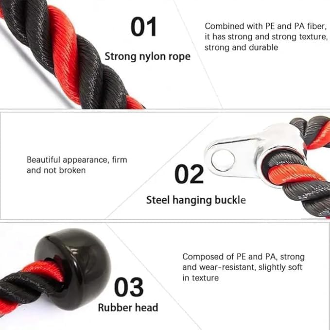 - ✪ حبل كابل ثلاثي الرأس مصنوع من النايلون عالي الجودة 69 سم، قوي ومتين، رؤوس حماية للبيئة على كلي الطرفين، كثافة عالية ومتانة جيدة، يمكن ربطه بأي نظام رياضي عالمي للتدريب المتعدد.