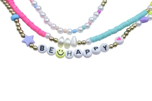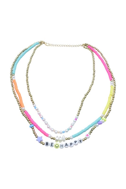Generic - طقم عقد بكلمة "Be Happy" متعدد الطبقات مزين بخرز باستيل للنساء - متعدد الالوان
