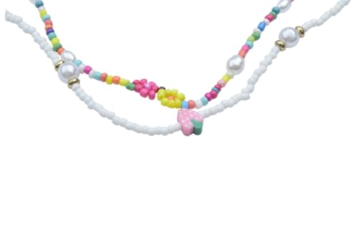 Generic - سلسلة خرز ملونة متعددة الطبقات مع دلايات على شكل فاكهة وزهور للنساء - متعددة الالوان