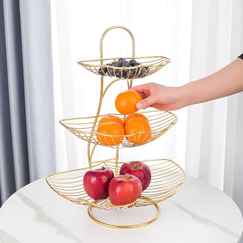 Generic - حامل فاكهة متعدد الطبقات - سلة معدنية أنيقة بثلاث طبقات لتنظيم الفواكه والخبز، تصميم سلكي كريمي، مثالي لديكور المنزل والاستخدام العملي.