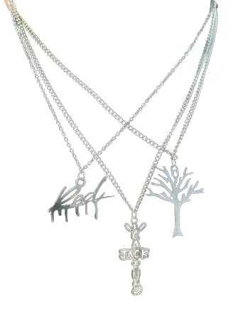 Generic - طقم عقد بسلسلة فضية بطبقات مع دلايات على شكل شجرة وفراشة وطبيعة، دلايات متعددة