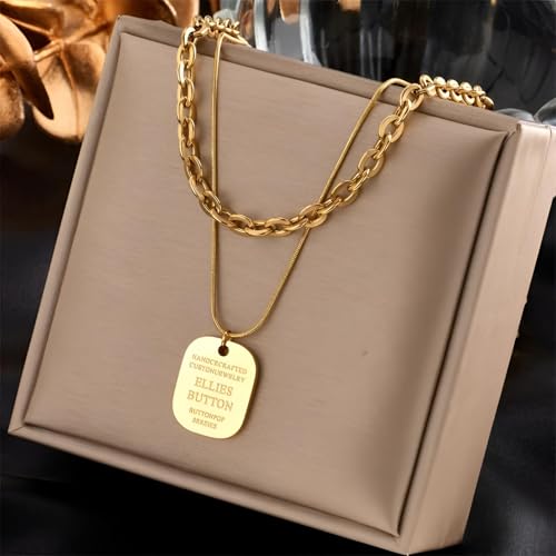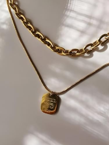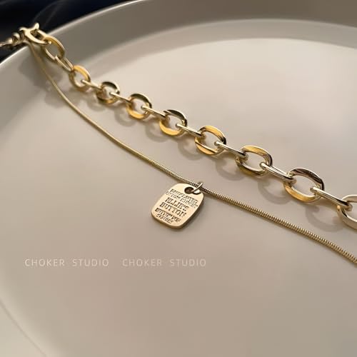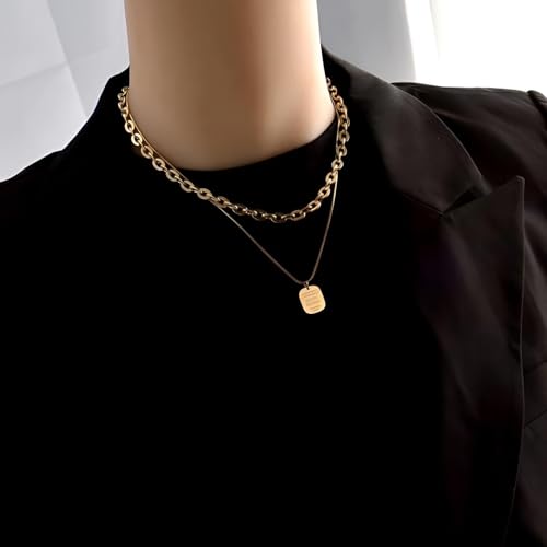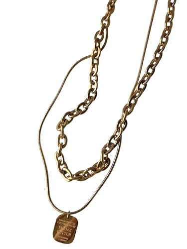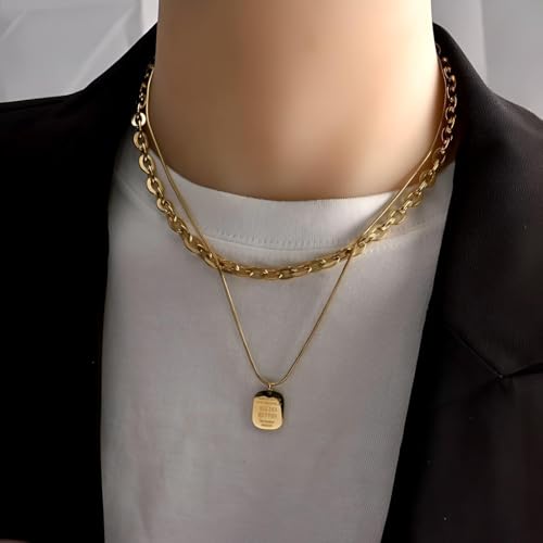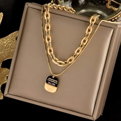 Generic - نمط متعدد الطبقات - سلسلة عصرية غير منتظمة بتصميم متخصص من التيتانيوم الصلب المطلي بالذهب قلادة متعددة الطبقات انيقة ذات ملمس عميق مجوهرات هدية