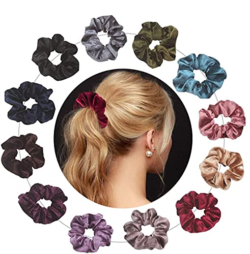 LayYun - مجموعة ربطات شعر مخملية، ربطات شعر ناعمة وانيقة، ربطات شعر مطاطية للنساء، ربطات شعر كرونشي للنساء، 12 لون (12 قطعة)