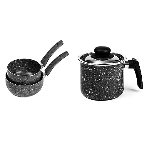 Lazord - طقم كاسرولات جرانيت (قطعتين، مقاس 14 و16، لون اسود) + لبانة جرانيت، مقاس 14 - لون اسود من لازورد