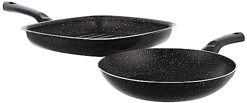 Lazord - طقم شوايات + حلل طهي - جرانيت - قطعتان - مقاس 27، 22 - باللون الاسود، من لازورد