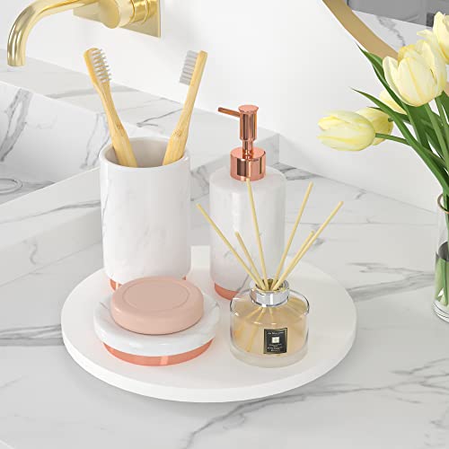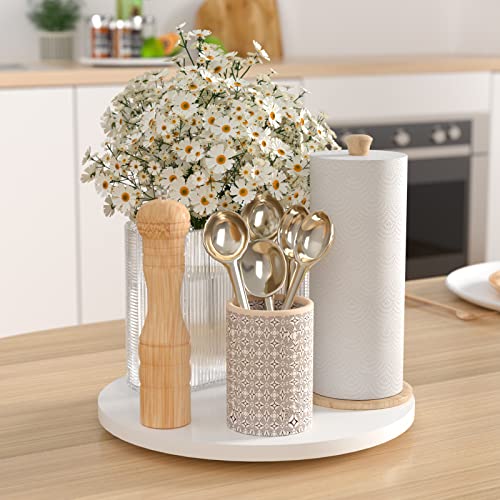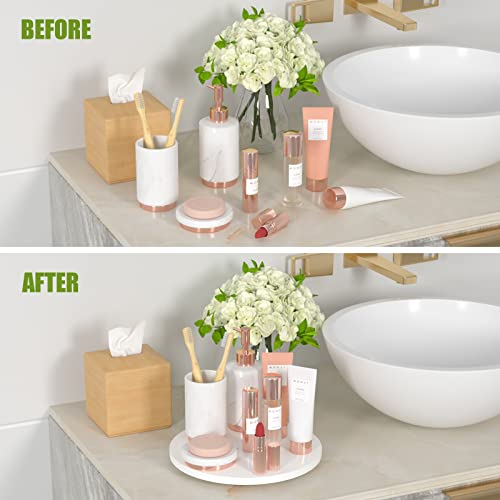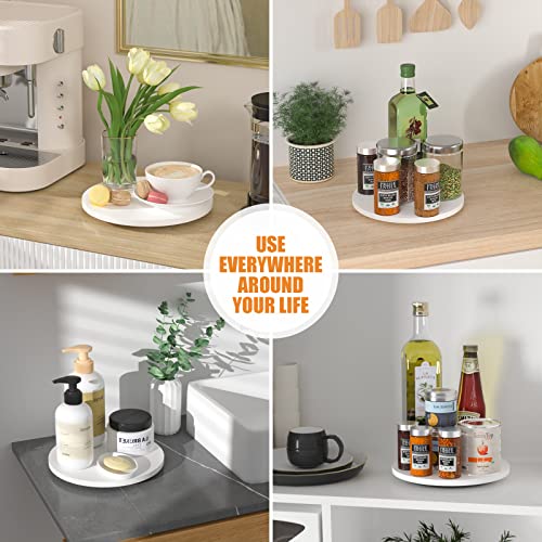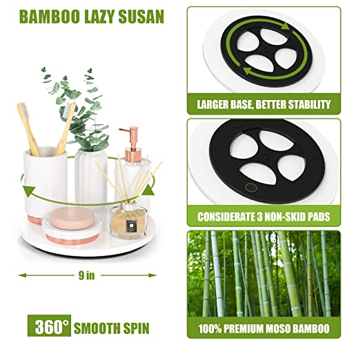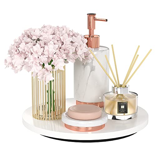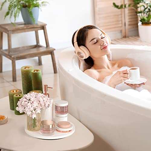 SweetVita - منظم ليزي سوزان للحمام بتصميم صينية دوارة فانيتي من البامبو 22.8 سم لتنظيم وتخزين مستحضرات العناية بالبشرة والمكياج والعطور، قاعدة ليزي سوزان دوارة لدولاب المؤن والمطبخ وسطح الحمام، أبيض