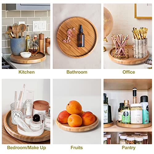 Swotech - منظم ليزي سوزان، قرص دوار للمطبخ من الخيزران للخزانة، منظم التوابل على سطح الطاولة والتخزين، صينية فانيتي دوارة 360 درجة لخزانة المؤن والحمام والثلاجة وتنظيم تحت الحوض