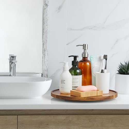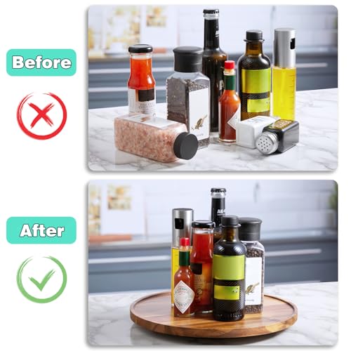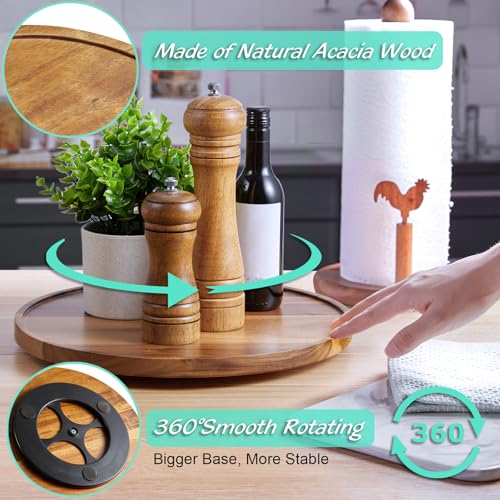 Bivvclaz - منظم قرص دوار من ليزي سوزان، 12 انش من خشب الاكاسيا ليزي سوزان لخزانة الطعام وخزانة المؤن وسطح الطاولة وتنظيم الحمام، صينية ديكور بيت المزرعة لديكور المطبخ والمقهى