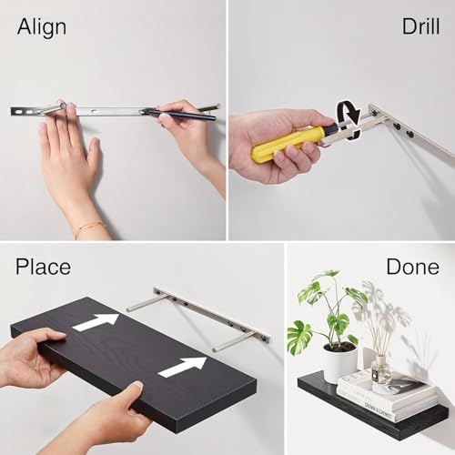 LBMT - ارفف عائمة للحائط من ال بي ام تي، ارفف خشبية ريفية تثبت على الحائط للحمام وغرفة النوم وغرفة المعيشة والمطبخ ورف معلق للكتب/التخزين/ديكور الغرفة بسعة 22 باوند (اسود)