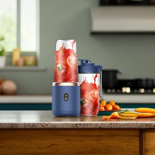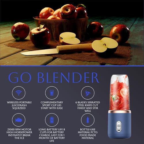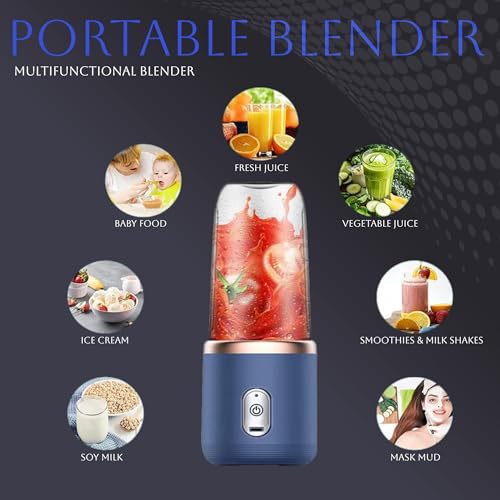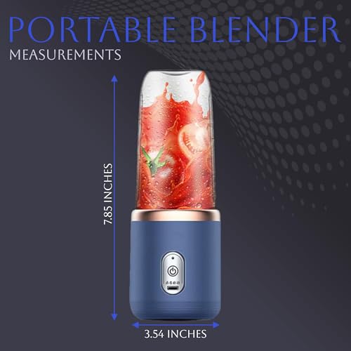 LBOYLOVE - خلاط شخصي محمول سعة 14 اونصة مع 6 شفرات ومحرك قوي للعصائر والمخفوقات والسموذي قابل لاعادة الشحن بمنفذ USB للمنزل والمكتب والسفر وصالة الالعاب الرياضية من لبوي لوف (ازرق كحلي)