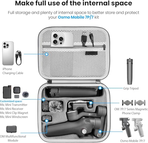 LBOYLOVE - شنطة تخزين محمولة لجهاز التثبيت دي جي اي اوسمو موبايل 7 برو/7 من لبويلوف - شنطة كتف من البولي يوريثان مقاوم للماء لحمل ملحقات الموبايل الذكي - متينة للسفر لملحقات دي جي اي اوسمو موبايل 7 برو/7P