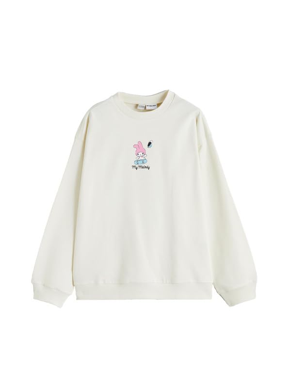 LC WAIKIKI - سويت شيرت للبنات بقصة واسعة ورقبة دائرية ضيقة مبطن من الداخل بثلاث طبقات بملمس ناعم من ال سي وايكيكي 2