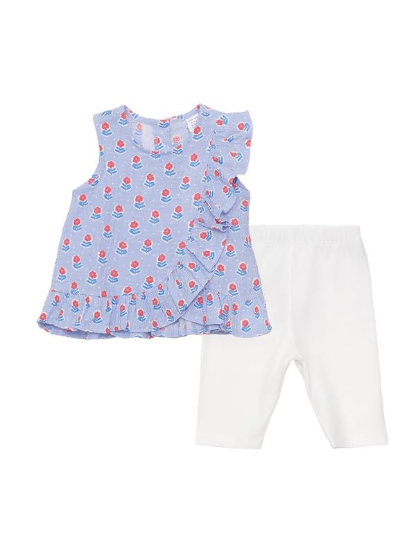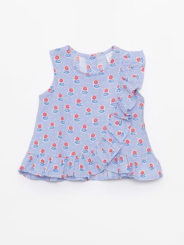 LC WAIKIKI - طقم بلوزة وبنطلون مطبوع بدون كمام ورقبة دائرية ضيقة للبنات الصغيرات من ال سي وايكيكي - قطعتان