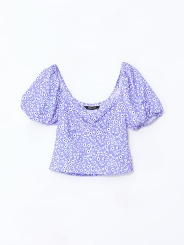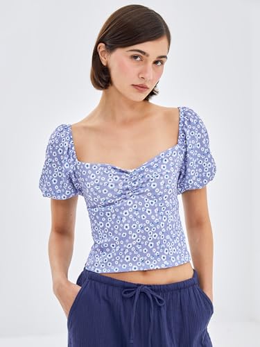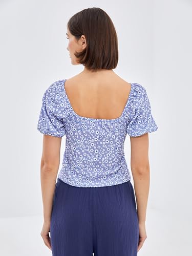 LC WAIKIKI - بلوزة قصيرة للنساء بأكمام منفوخة ورقبة مفتوحة عند الأكتاف من ال سي وايكيكي