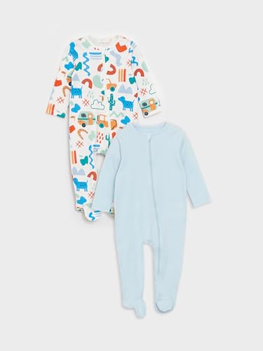 LC WAIKIKI - سالوبيت برقبة دائرية ضيقة للأولاد الصغار من ال سي وايكيكي، قطعتين (مقاس من عمر يوم إلى 12 شهر بجوارب + مقاس 12 شهر فما فوق بدون جوارب)