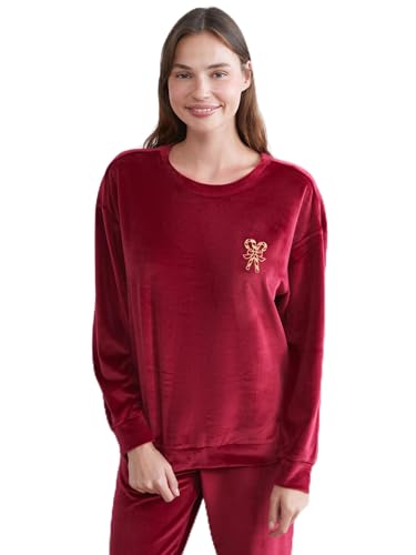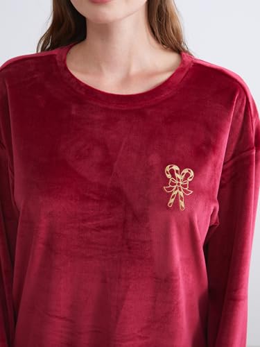 LC WAIKIKI - طقم بيجامة قطيفة مطرز برقبة دائرية ضيقة للنساء من ال سي وايكيكي