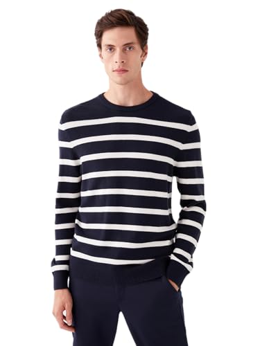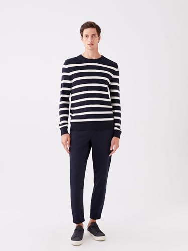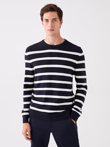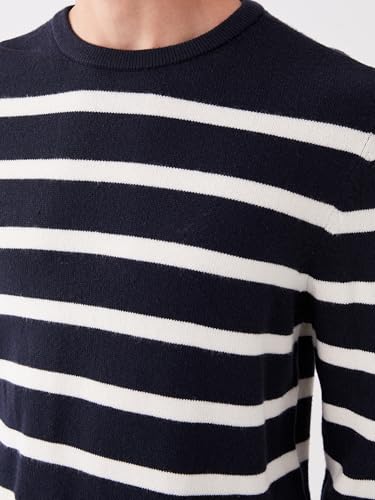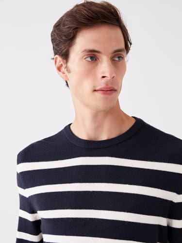 LC WAIKIKI - LC واكيكي سويتر تريكو مخطط برقبة دائرية ضيقة واكمام طويلة للرجال، مقاس L، كحلي