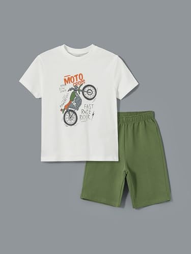 LC WAIKIKI - LC واكيكي تي شيرت وشورت مطبوع برقبة دائرية ضيقة للاولاد من قطعتين