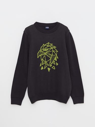 LC WAIKIKI - LC واكيكي سويتر محبوك برقبة دائرية ضيقة واكمام طويلة للاولاد بعمر 5-6 سنوات، رصاصي W22202Z4-HJB-5-6 سنوات-8683113216081