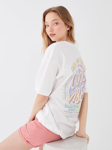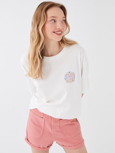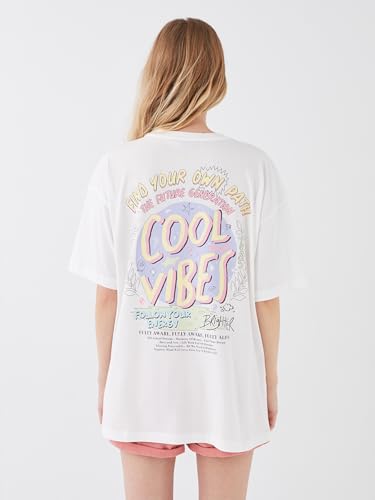 LC WAIKIKI - تيشرت مطبوع برقبة دائرية ضيقة وأكمام قصيرة وقصة فضفاضة من ال سي وايكيكي