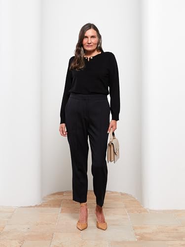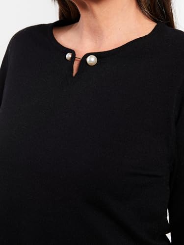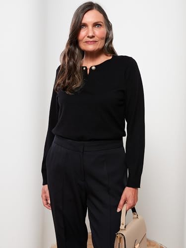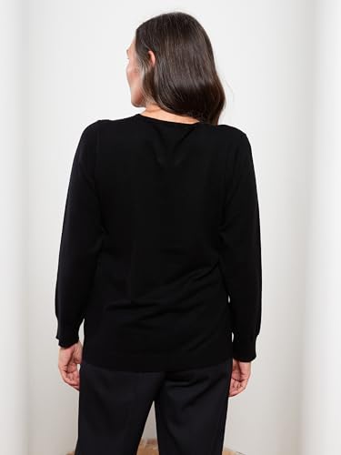 LC WAIKIKI - LC واكيكي سويتر تريكو بقصة عادية ورقبة دائرية ضيقة واكمام طويلة للنساء W25547Z8-Cvl-1 L اسود