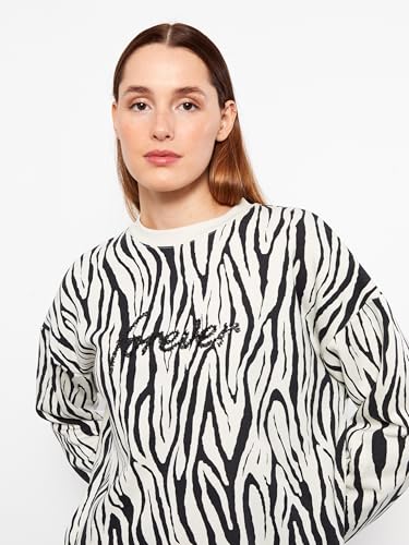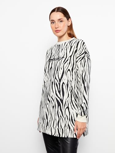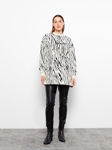 LC WAIKIKI - سويت شيرت سميك برقبة دائرية ضيقة ونقشة ذاتية للنساء من ال سي وايكيكي، تونيك / بلوزة طويلة