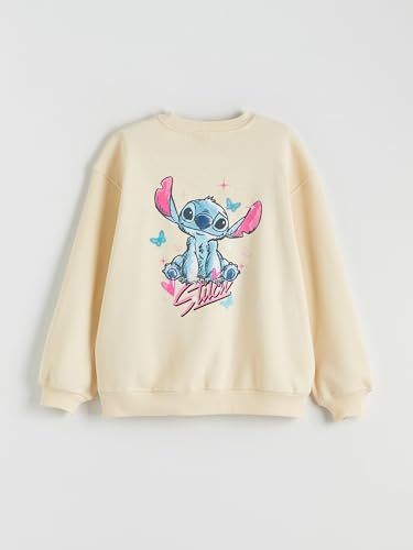LC WAIKIKI - سويت شيرت سميك برقبة دائرية ضيقة مطبوع بتصميم ستيتش للبنات من ال سي وايكيكي