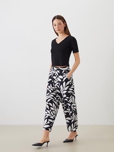 LC WAIKIKI - بنطلون كابري مشجر بخصر مطاطي من ال سي وايكيكي للنساء