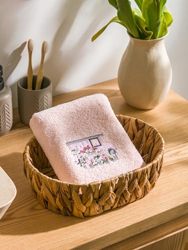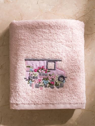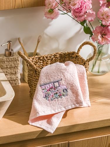 LC WAIKIKI - فوطة وجه S5BD00Z8-TUC-1 من القطن مطرزة بالزهور من ال سي وايكيكي، مقاس 50×80 سم، لون وردي