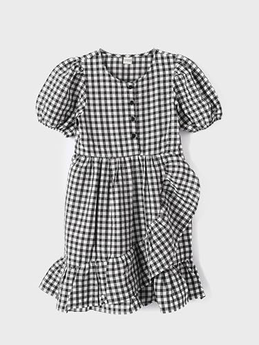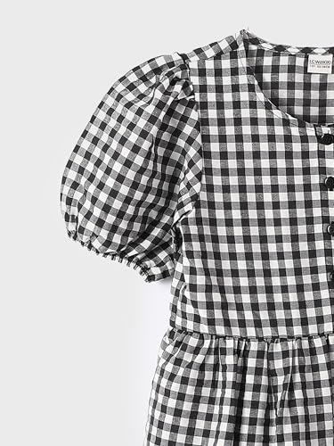 LC WAIKIKI - فستان بنقشة بأكمام قصيرة ورقبة دائرية ضيقة للبنات من ال سي وايكيكي