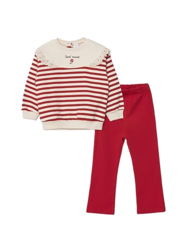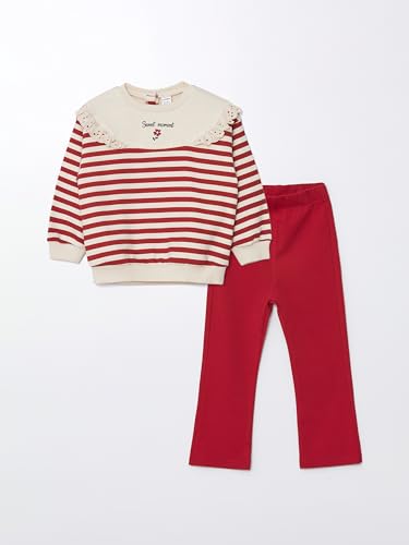 LC WAIKIKI - سويت شيرت مخطط برقبة دائرية ضيقة وبنطلون ضيق للبنات من قطعتين من ال سي وايكيكي