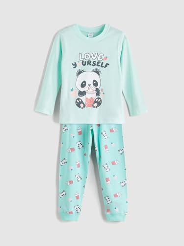 LC WAIKIKI - طقم بيجامة مطبوع برقبة دائرية ضيقة للبنات من ال سي وايكيكي
