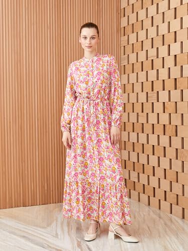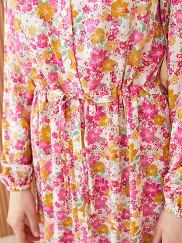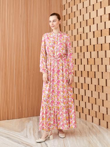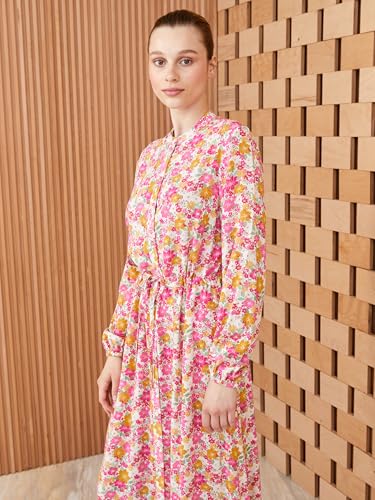 LC WAIKIKI - فستان على شكل قميص بياقة بتصميم مزين بالورود بأكمام طويلة للنساء من ال سي وايكيكي