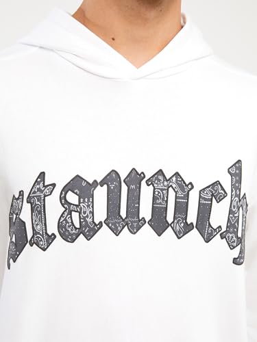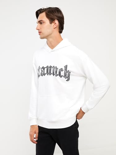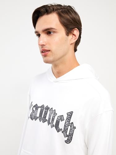LC WAIKIKI - LC واكيكي هودي سميك مطبوع باكمام طويلة للرجال W39150Z8-Q6K-1 مقاس L ابيض